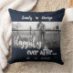 De levde lyckligt för alltid Nattlig himmel Bröllodskudde . En bröllopsminnessak . En bild av det nygifta paret och ett citat de levde lyckligt för alltid skrivet på en bakgrund av nattlig himmel och stjärnor , denna eleganta kudde är den perfekta bröllopsminnessaken för det nygifta paret och även för föräldrar .
