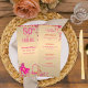 Modern och elegant. För 50-årens födelsedagsfest Menu. Shock rosa, glamorös, guld, metallfolie faux glittery, konetti, fram- och baksida: 50 & Fabulous script shock rosa fuchsia på golden faux metallic foil och ett par rosa högklackar 👠 och en söt guldrosa 👛. Du kan enkelt ändra ditt namn, typsnitt, färg, storleka nummer och åldersnummer genom att klicka på Zazzles anpassningsalternativ.