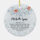 Julinspirerande citattecken personlig prydnadsföremål beskriver en vacker vattenfärgutandningsdesign med röda bär och blå löv. Den innehåller en del av Bible Matthew 1:23: "De ska kalla namn Immanuel, Gud med oss." Bakåtskriften och namn kan anpassas till valfri information.*