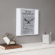 Den här väggklockan har 10 kommandon i ett fet utskrivet teckensnitt med svart brev på en grått-bakgrund med gräns-accenter. Den här klockan är gjord för valfri vägg och tryckt med ett processaa mått för AcryliPrint®HD på 10,75 x 10,75 tum och tillverkad av klass-A-akrylat. Batteridrivna användor ett AA-batteri endast för inomhusanvända, rekommenderas inte för använda utomhus.