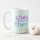 Pronoun-etikett med roligt twist: en myntbakgrund med varierad färgad i pastellform. Lägg till ditt namn också! Underbar för personer som inte uppfyller kraven för transfusion, enby, gender eller vätska. Njut av att förklara dina uttalanden samtidigt som du får fördelarna med detta vackra mugg.
