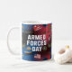 Visa er tacksamhet med denna dag för de väpnade styrkorna i mugg, och hedra våra truppers engagemang och mod. En perfekt gåva till alla som stolt stöder vår militär!