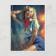 This whimsical 1940's zombie pin-up model strikes a captivating pose, her glowing eyes creating an irresistible undead charm. With torn clothing and hints of decay, she still exudes playful confidence—blending retro glamour with a delightfully ghoulish twist.