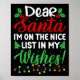 Dear Santa I'm On Nice List In My Wishes Funny Chr Poster