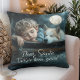 A sweet holiday photo design to personalize with a favorite family photo, this pillow features a modern handwritten script message to Santa saying "Dear Santa, We've been good" along with a selected photo. Load your photo into the design template and you can edit the text or keep it as shown. The back of the pillow has a thin blue and ecru beige ticking stripes pattern with a rustic farmhouse look. You can change the blue background to another color if you wish to match it with your decor. These pillows make warm and inviting decor in your home during the holidays and a wonderful family keepsake. Also a nice gift for grandparents and relatives.