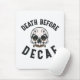 Show your love of coffee in style! This design features a unique skull with the phrase "Death Before Decaf," perfect for those who prefer their coffee to be caffeinated.