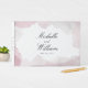 En elegant bröllop-konstruktion med ljusa rosa vattenfärger som målats gräns på en vit bakgrund designad av Shelby Allison.