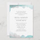 En inbjudan från elegant bröllop som innehåller en lätt turkos vattenfärg som färgats gräns på en vit bakgrund designad av Shelby Allison.