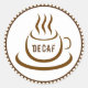 Illustration av en kopp kaffe med texten "Decaf"