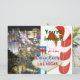 RSVP-kort för decemberhoch i Las Vegas. Svarskort för gäster som bifogas av brudar och brudgummar med bröllopsinbjudningar och/eller separata mottagningsinbjudningar. Dag- och nattbilder från det berömda Strip i Nevada med en julgodisstrut bakom den välkända välkomstskylten. Textmallar inkluderar brud och brudgums namn, sista svarsdag för RSVP och valbara menyalternativ.