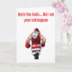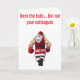 Ge dina hälsningar en rejäl dos buskis med det här lekfulla kortet! Med den djärva texten ”Pynta julgranen, men inte dina kollegor” visar den här designen en busig scen där en serie-Santa av misstag (eller kanske inte så av misstag!) slår ut en av sina tomtar. Det är en lättsam, underfundig twist på julstress som är perfekt för arbetskamrater, kontorsfester eller någon som uppskattar en rejäl skratt under den festliga säsongen. Sprid glädje, fnittrande och lite harmlös bus med ett kort som garanterat sticker ut!