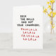 This card has a clean and simple design with a funny holiday message. At the top, the card reads "DECK THE HALLS AND NOT YOUR COWORKERS" in a casual black handwritten style on a white background. Below it, "FA LA LA LA LA LA LA LA LA" appears in bright red lettering, adding warmth and energy. The mix of playful advice and cheerful holiday spirit makes the message instantly smile-worthy. The overall look feels relaxed and friendly, almost like it was written with chalk. It’s a clever, lighthearted way to spread holiday cheer. 🎅🏼🎄🎁
