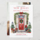 We're decking new halls for the Holidays Card. Christmas Moving Announcement photo Card. Favorite family photo on the back. Design features a watercolor red door decorated with pine wreaths and trees, red bows and packages. Holiday we moved and have a new address photo card.
