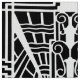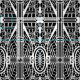 Tyg i ett baserat mönster på den arkitektoniska art déco specificerar - vit på en svart bakgrund
