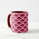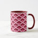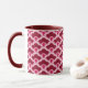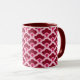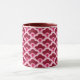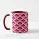 Kinesisk scallop, eller wave mönster, traditionell i textil- och emalarbete, kaffe mugg i djupt burgundi vin och skuggor av mjuk rosa med djupa accenter vid ro rosa