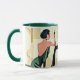Kaffe mugg i en elegant Art Deco/jazz age dam i en grönt i jade, med en vineglas, i en halvabstrakt, modern konst stil