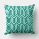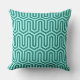 En Art Deco, egyptiskt inspirerat geometriskt motiv i turkosblått på en blek akvabakudda utomhuskudde