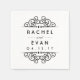 En matchning mellan perfekt och konst deco, Gatsby themed eller vintage bröllop, vår chic bröllop-cocktail-blöjor visar vintage blomstrande illustrationer som ger namn och bröllop-datum i skarpa svarta deka-stil-bokstäver. Koordinerar vår Deco Flourish bröllop-samling.