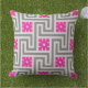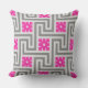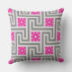 Art Deco Grekiska nyckel eller labyrint mönster dekorativ kudde i lätt silver grått / grått och mörkfärgat grått accentuerat med djup fuchsisk rosa