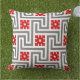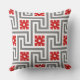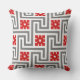 Art Deco Grekiska nyckel eller labyrint mönster dekorativ kudde i mörk grafitfärgat grått / grått och vitt, accentuerat med djupt kinesiskt rött