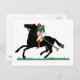 Art Deco-design för en svart häst med en polo-spelare som rider den klädd i rött och grönt