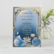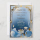 Det här bröllop-kortet har en fin och förfinad design som är centrerad kring blommor av typen blått och guld och deras löv. Blommigten gräns tillför en smula elegans, med ett krångligt guld som klargör att ramar är ett vackert kort. Bakgrunden övergår smidigt från ljus till mörk blått, vilket ökar den övergripande konstruktionens rikedom och djup. Denna konstnärliga skapelse blandar inslag av konsthändelse och modern minimalism, vilket leder till en sofistikerad inbjudan till snyggt som på ett perfekt sätt fångar kärnan i ett speciellt firande i bröllop. Anpassa texten om namn och detaljer om bröllop. Du kan ladda ned kortet till din mobila enhet eller dator. Jag designade kortet med hjälp av generativ hjälp.