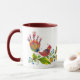 This ceramic mug features a decorative illustration of two birds facing each other, surrounded by expressive flowers and berries in rich red, blue, and green tones. The mirrored composition creates a balanced, harmonious design inspired by nature and painted in the same cohesive artistic style as the rest of the collection. A charming and practical piece of drinkware that adds color and character to everyday coffee or tea, and makes a thoughtful gift for art and nature lovers.