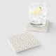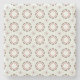A decorative coaster featuring a symmetrical geometric pattern with blue, white, and brown hues shown from the front and back on a gray background.