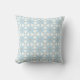 A decorative pillow featuring a symmetrical geometric pattern with blue, white, and brown hues shown from the front and back on a gray background.
