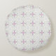 A decorative pillow featuring a symmetrical geometric pattern with blue, white, and brown hues shown from the front and back on a gray background.
