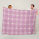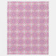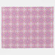 A set of purple-patterned towels is displayed. Top image shows bath towels on a rod, and the bottom image shows a washcloth with a corner folded.