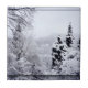 Ett foto som bara visar en glimt av sjö genom snö täckt fir träd. Detta landskap bild är digitalt manipulerat för att se ut som en vattenfärg. Sjö Nojiri är ett glaciärt sjö i de japanska Alpernorna. Det är en populär semesterort och vinter, och vinter-OS 1998 hölls i Nagano och i de omgivande skidbackarna. Även om klimatet är tempererat och sjö sällan fryser ned, är bergsområdena vanligtvis täckta med flera fot snö på vintern.