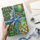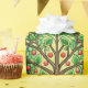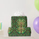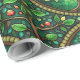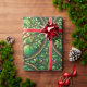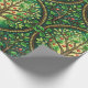 Decorative wrapping paper with a repeating Tree of Life pattern in green tones featuring intricate branches and red fruit within circular motifs.