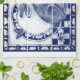 I blå och vita tonar med ett "krackat glasrutor" utseende, har den här handduken mitt keramiska konsthantkanin och en vas av daisy blommor. Gräns och andra motiv inspirerades av antika och vintage Dedham, Delft och chinoiserie pottery. Det skulle vara roligt köksdekoration, eller som gåva till alla som kärlek bunny kanin, djur och natur. Nyskapande, unika teckningar och design av Tuzi Williams.