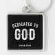 DEDIKERAD TILL GOD ANPASSADE COOLA VITTEXT FYRKANTIG SILVERFÄRGAD NYCKELRING