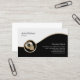 Det här affärskortet för lagerdiskjockey innehåller svarta och vita segment som avgränsas av en vågigt guld-remsa. En elegant guld-ikon med ett röstbord ljuger på den nedre lämnat sidan av designen, som i allmänhet är lämplig för företag eller yrken som är relaterade till musik, baser, basster, basguitarist, musiker, band, underhållning, sten teman.
