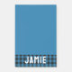 Djup blå klibbig personlig av anteckningsblock med ditt namn i stort vitt, fetstil brev vid grund i anteckningsblocket mot bakgrund av blå buffelkontroll. anteckningsblock i personlig med blå buffeldetaljkontroll, ditt namn i stort fet brev och en stark blå nyans som gör att dina anteckningar och påminnelser blir svåra att missa!