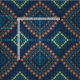 Trendigets unika utformning i etnisk stil med ett sömlöst mönster som är gjort av geometriska former i gult, orange, brun och turkos på en djup blå bakgrund.
