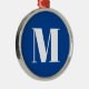 Deep Blue Initial Brev Monogram Modern Snyggt Julgransprydnad Metall