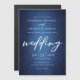 Vackra djupa skuggor av mörk blått skapar en struktur som vatten på den här bröllopsmagnet. Perfekt vattenfront magnetiskt inbjudan för en ceremoni på kvällen av sjö i vatten. Elegantens vita minimalistiska skript med dina detaljer på en gradient som känns som om du simmar under vatten på natten.