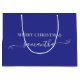 Skapa din egen personlig eller ditt monogram stora presentväska för hennes gåva. Anpassa det moderna, söta, lilla coquette stil-handskrivet kalligrafiskript stil och storlekt efter behov. Öka teckensnittet storlekt för kortare namn... minska det storleka teckensnittet för längre namn. Ändra den djupa blå bakgrunden färg eller vit färger så att den matchar ditt helgdag tema.
