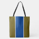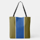 Den här skarpa, sportsliga designen har ett djupt blått lodrät i mitten av rand, som markerats med slender vita ränder mot en levande, gyllene oliv grönt bakgrund.