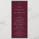 Classic style flat wedding program featuring a simple yet elegant design in a deep burgundy color that is perfect for a fall wedding or a winter / Christmas wedding.