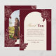 Close the celebration on a heartfelt note with a thank you card that mirrors your invitation’s deep burgundy florals and ivory arch. The rich tones and refined script let your gratitude feel warm and sincere, option to add your photo on the back turning this elegant Thank you card into a keepsake. Coordinates with other products from the wedding suite.