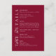 Share all your important wedding information in a timeless and elegant way with this Burgundy Wedding Details Card. Designed with a rich burgundy background and classic serif typography, this formal insert card is perfect for including reception details, hotel accommodations, RSVP instructions
