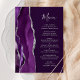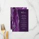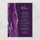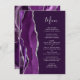 Den moderna bröllop-menyn på den lämnat kant i eleganten har en lila vattenfärgsagat gräns som trimmas med faux silver glitter. Anpassadet kombinerar handskriftsskript för silver grått och kopparplåt typsnitt på djup lila. Den omvända sidan har en matchande lila- och silver-agate-design.