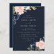 Deep Navy Blue & Blush Floral Wedding Inbjudningar