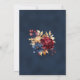 Deep Navy Blue är harmoniskt parad med guldblad och burgiga blommigtar för en rik av färg. Återgår till texturerad marinskugga centrerad med matchande blommigt bouquet. Den centrala cirkeln ram för parets namn är försedd med gyllene cirkel och dekorativ amperand. Dusty Navy Blue, Marsala vin red med guld hued foliage.