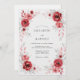 This design features a vibrant cascade of deep red blooms and soft gray foliage, creating a rich and romantic aesthetic. The painterly style evokes an elegant and timeless mood for your special occasion. Delicate petal textures and leafy accents add depth.