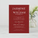 Celebrate your love story with this classic and elegant wedding invitation. Featuring a deep red background and sophisticated white script font, this design exudes timeless romance. The clear layout ensures all essential details of your special day are beautifully presented, from the names of the happy couple to the ceremony and reception information. It's the perfect way to set a refined tone for your wedding. This invitation is designed to impress your guests and make your wedding announcement truly memorable.